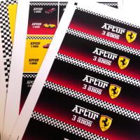 Em muitos casos, os adesivos são utilizados com formato dos logotipos. Letras e números de recorte também são possíveis e normalmente utilizados para carros e precificações.