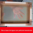 À base de água: Emulsão de coloração amarela resistente a água, indicada para telas que utilizarão tintas diluidas em água. Os substratos indicados para esta tela são: tecidos diversos, papel, madeira crua, camurça, TNT e isopor.