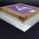 madeira é feita em estufa para que sua estabilidade dimensional seja mantida. O custo da tela feita com esta madeira é menor, pois não necessita de esticador e a fixação do nylon é feita através de grampos ou cola.