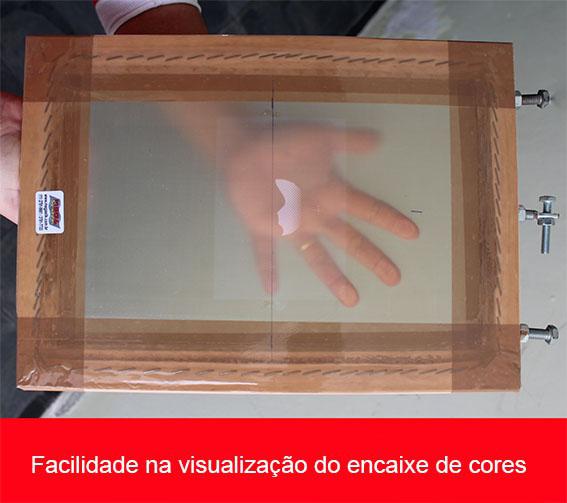 Nylon - Contendo de 120 a 180 fios utilizado frequentemente na impressão de vidros, objetos cilíndricos e substratos onde exija-se maior distância (fora de contato) entre a tela e o substrato.