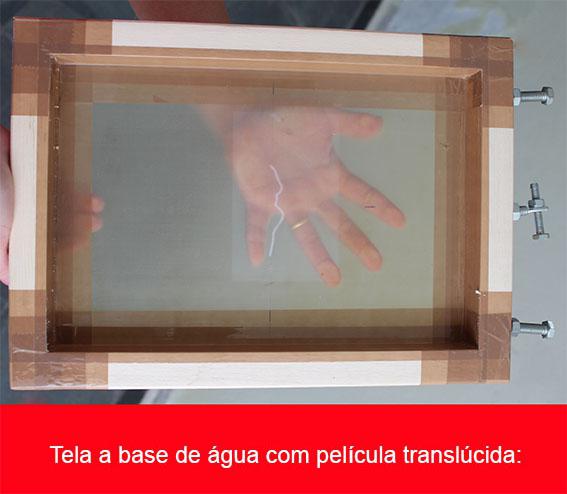 À base de água: Emulsão de coloração amarela resistente a água, indicada para telas que utilizarão tintas diluidas em água. Os substratos indicados para esta tela são: tecidos diversos, papel, madeira crua, camurça, TNT e isopor.