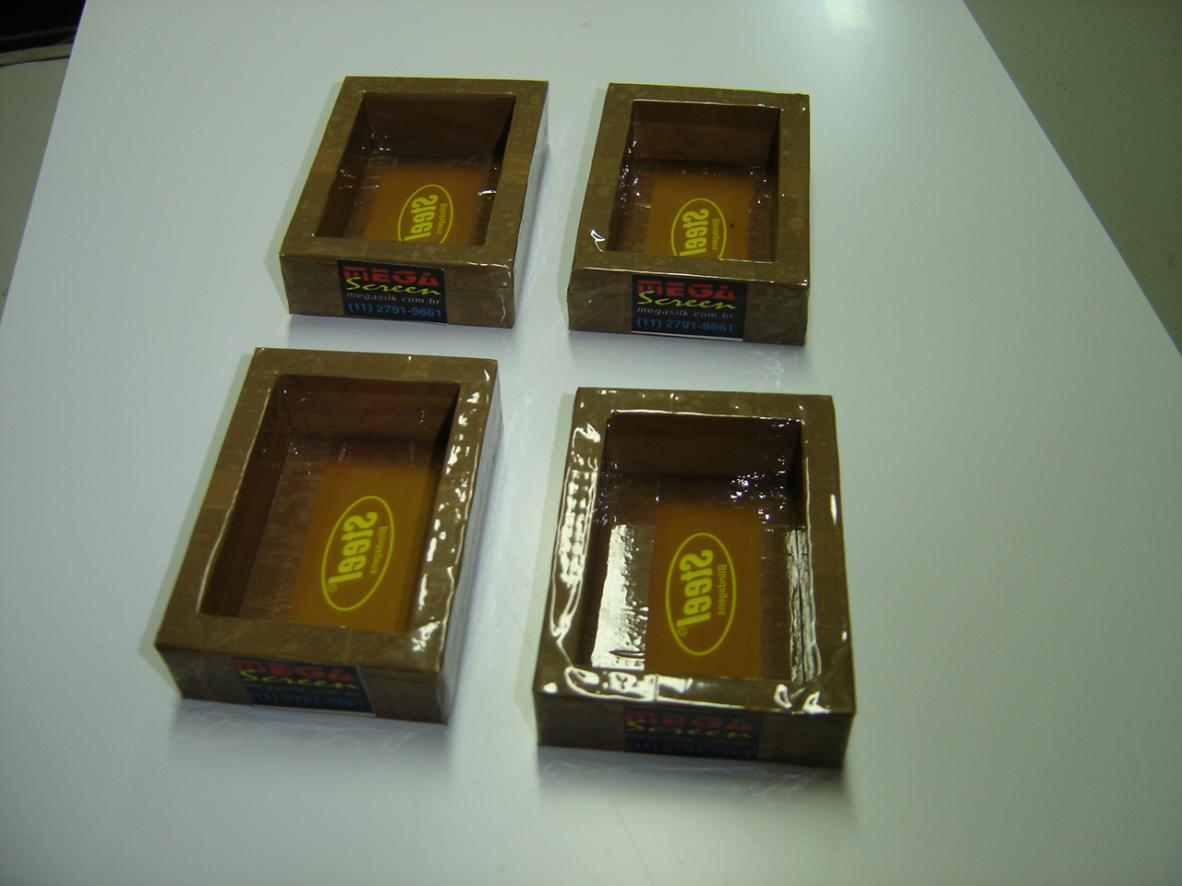 À base de solvente: Emulsão de coloração lilás resistente a solvente, indicada para telas que utilizarão tintas diluidas em solventes. Os substratos indicados para esta tela são: vinil adesivo, plásticos, madeira envernizada, ferro esmaltado, alumínio com ou sem pintura eletrostática, vidro, borracha, tecido de nylon, EVA, Baquelite e etc...